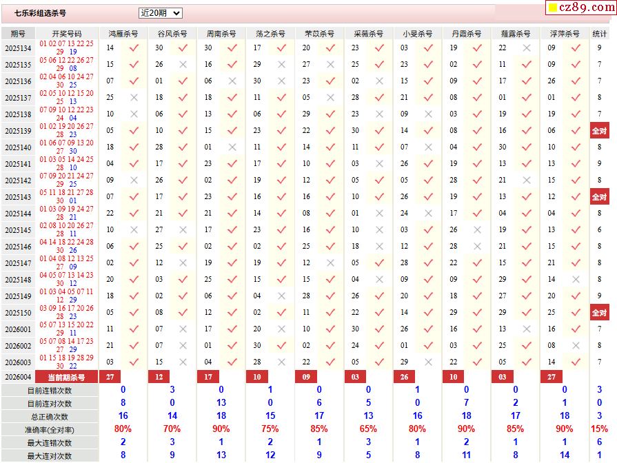 > 26年004期彩票专家福彩七乐彩杀号图表